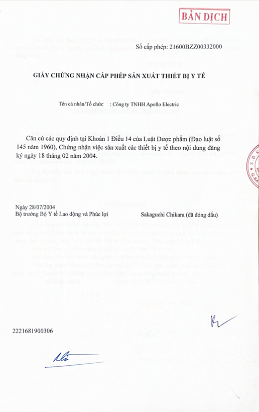 Giấy phép sản xuất thiết bị y tế ( Bản dịch )