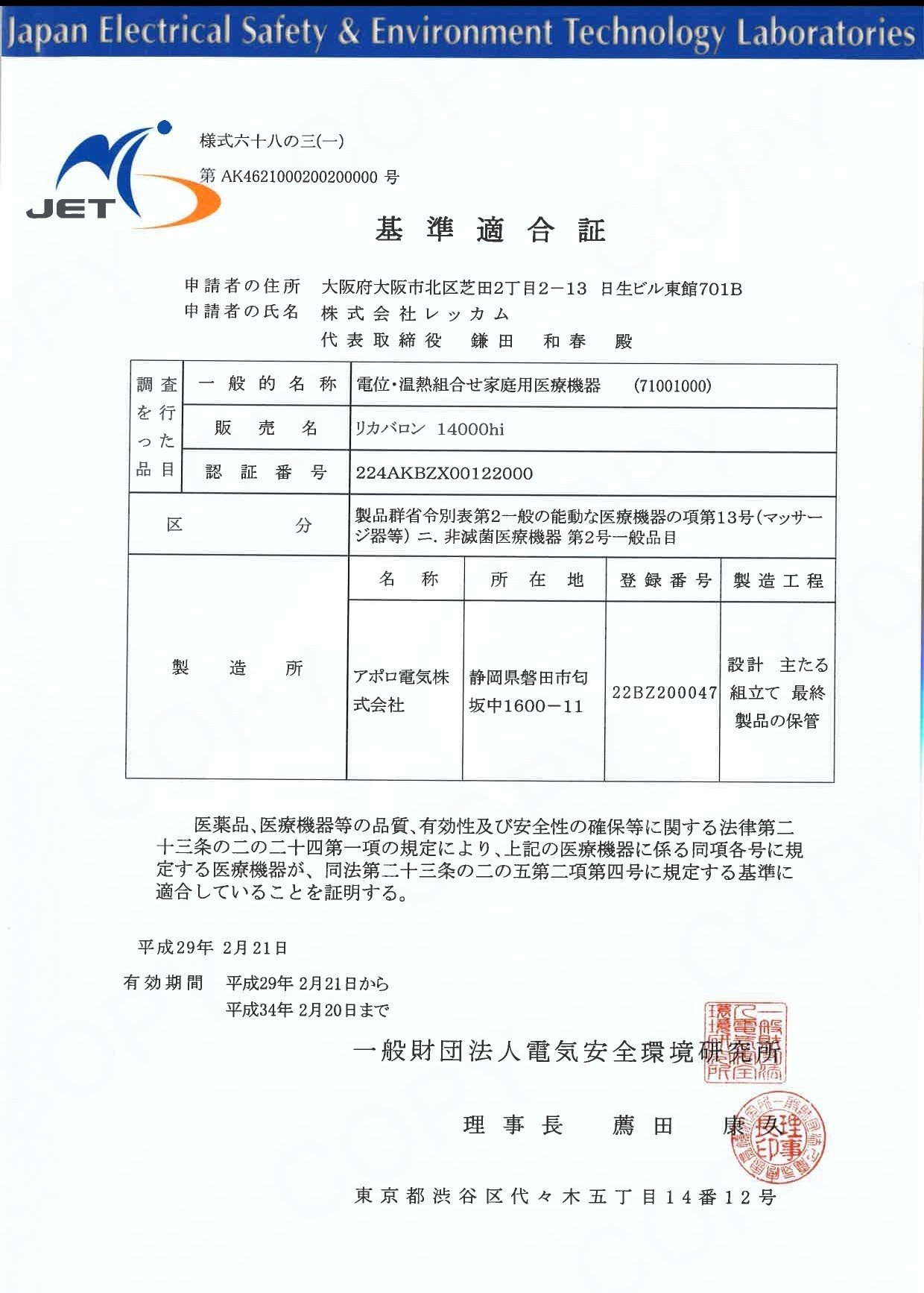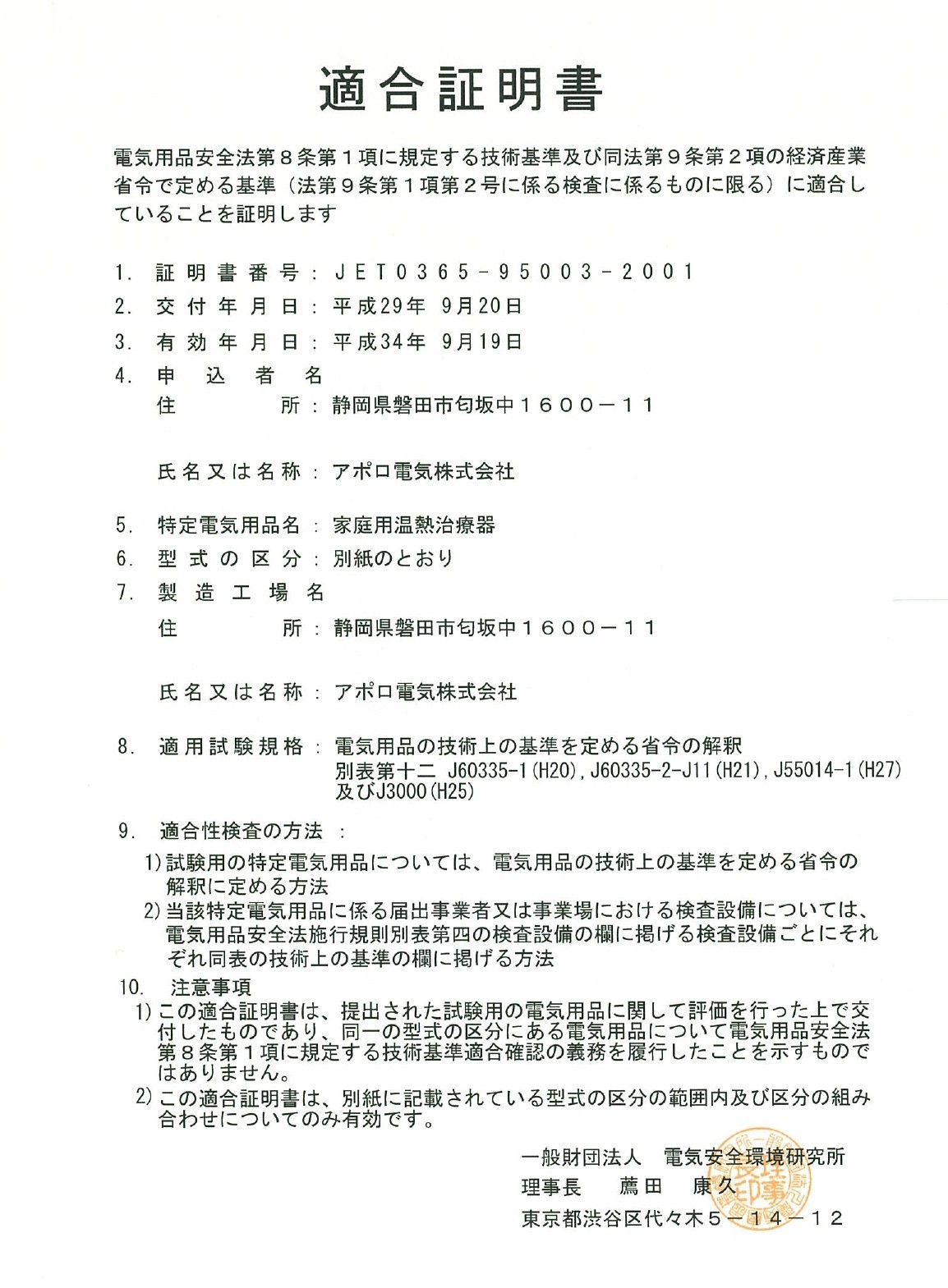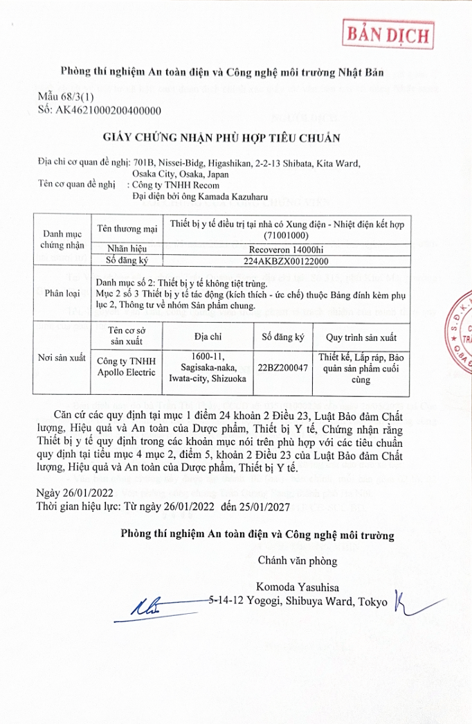 Giấy chứng nhận hợp chuẩn ( Tiếng Nhật )